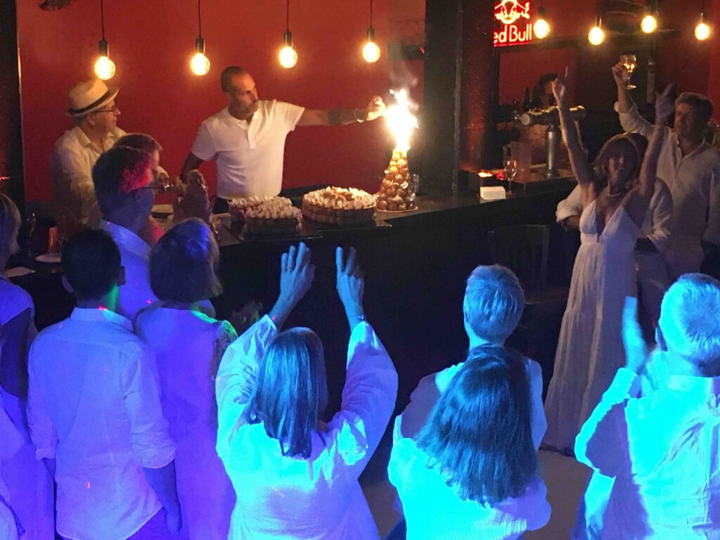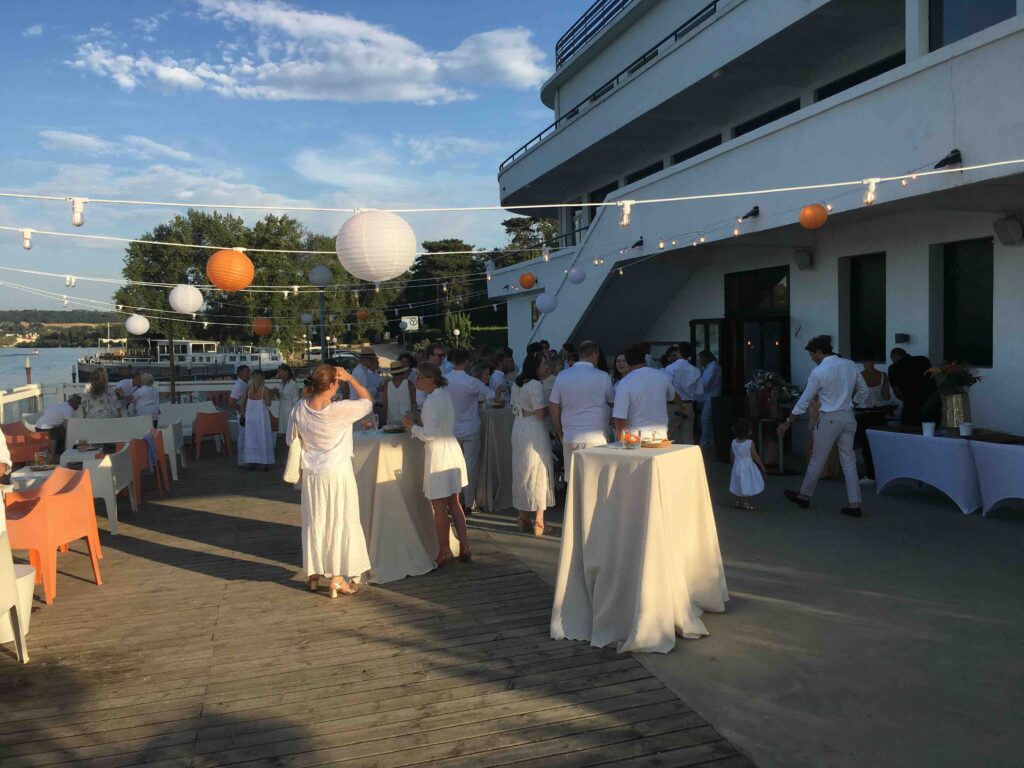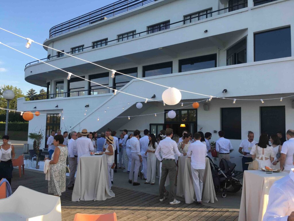 Notre client a fait le choix du Yacht espace événementiel à St Germain au Mont d’or pour fêter sa soirée anniversaire de manière exceptionnelle. Environ une centaine d’invités étaient présents, tous vêtus de blanc, ce qui a donné une touche d’élégance et d’unité à cet événement mémorable. Le buffet a été préparé avec soin par RECEPTIS, le traiteur événementiel du site, qui a proposé des animations culinaires originales et savoureuses, parmi lesquelles le foie gras en barbe à papa a particulièrement séduit les convives. L’atmosphère est restée festive et conviviale jusqu’au moment du dessert, qui a été personnalisé pour rendre cette soirée encore plus unique et inoubliable.